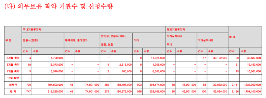 상장되는 공모주를 얻게 되는 기관들이 기업공개 과정에서 상장 후 일정기간 동안 기관투자자와 대주주 보유지분에 대해서 일정기간 동안 매도하지 않겠다고 약속하는 것을 말합니다.