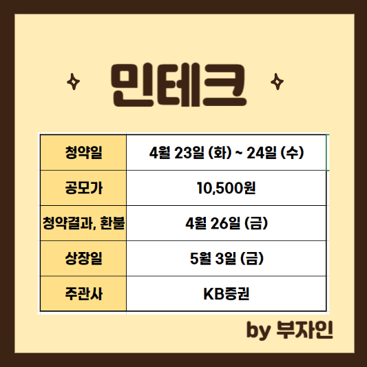 오늘부터 민테크의 공모주 청약이 시작되었습니다.