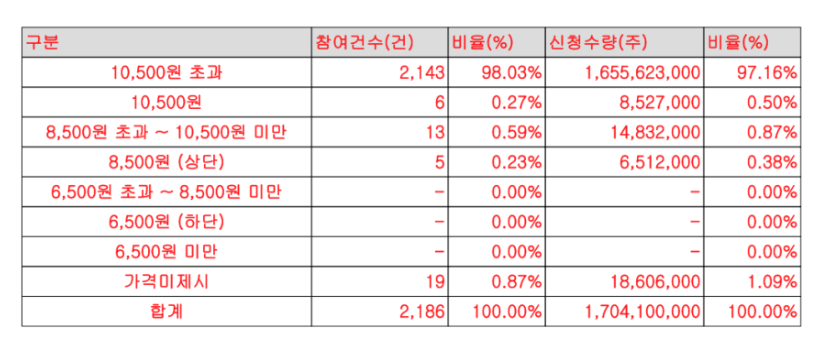 희망공모가였던 6,500원 ~ 8,500원의 상단가를 초과하는 결과를 만들어 냈습니다.