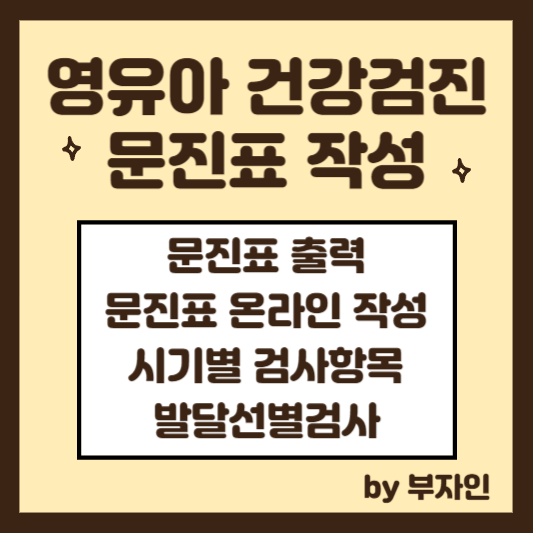 문진표는 건강검진, 구강검진과 발달선별검사까지 3가지로 구분되어 있으며 각각의 문진표를 출력하여 작성하시면 됩니다.