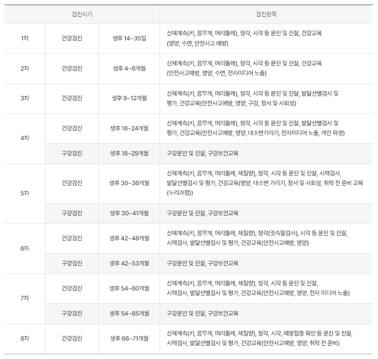 아이가 태어나면 시기에 맞춰서 건강검진을 받아야 합니다.