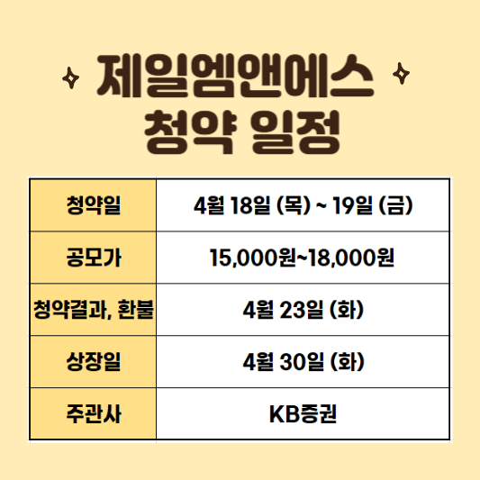 제일엠앤에스 공모주 청약 일정 기업정보 수요예측 주관사